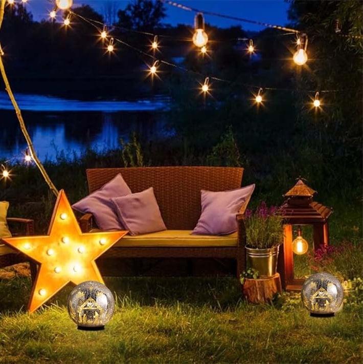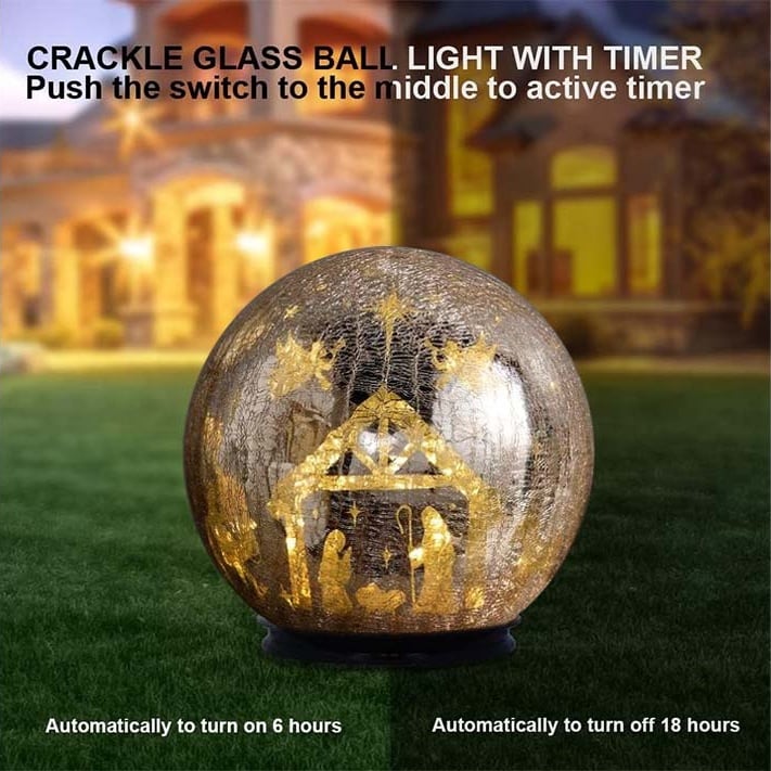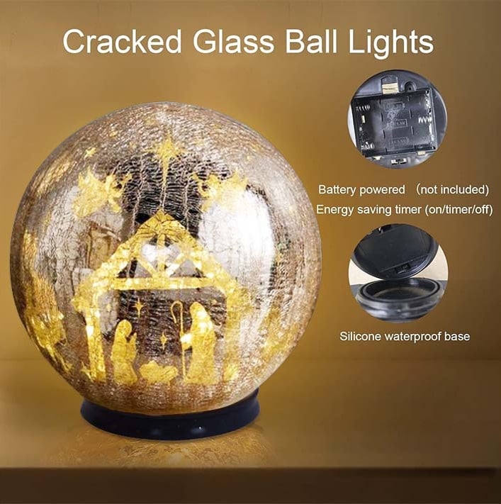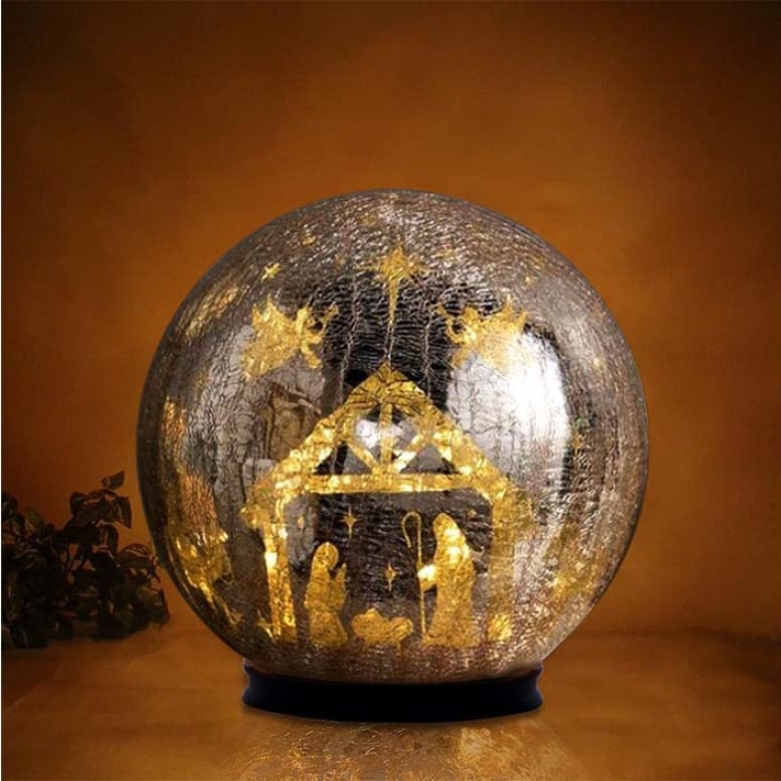 Add a touch of wonder to your space with this stunning crackle glass sphere that transforms every evening into a quiet celebration of light. By day, it’s a shimmering decorative orb; by night, it reveals a 360° illuminated scene and starry sky that glows softly through artisan crackled glass.